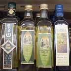 Olive oil varies in color and may range from pale-yellow to deep-green depending on the fruit used and its processing. Cold pressed olive oil is superior in flavor to refined. Oil from the first pressing, called "virgin" olive oil is the most flavorful. Also classified according to acidity there is: extra virgin, superfine, fine, virgin, and pure, in ascending degree of acidity. "Pure" olive oil, and that labeled just "olive oil" may be a combination of cold-pressed and refined oil and is suitable only for cooking. Olive oil has a relatively low smoke point (375 degrees) and is often blended with a higher smoke point oil, such as canola, to facilitate cooking at really hot temperatures. |